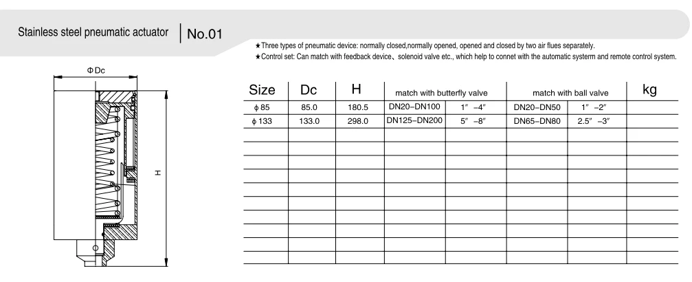 - محرک تک کاره: که توسط ورودی هوا در یک طرف هدایت می شود، طرف دیگر به نیروی فنر برای تنظیم مجدد خودکار در صورت خرابی تامین هوا متکی است. این امر عملکرد ایمن خط لوله را تضمین می کند و از خطرات ایمنی احتمالی در صورت خرابی سیستم تامین هوا جلوگیری می کند.